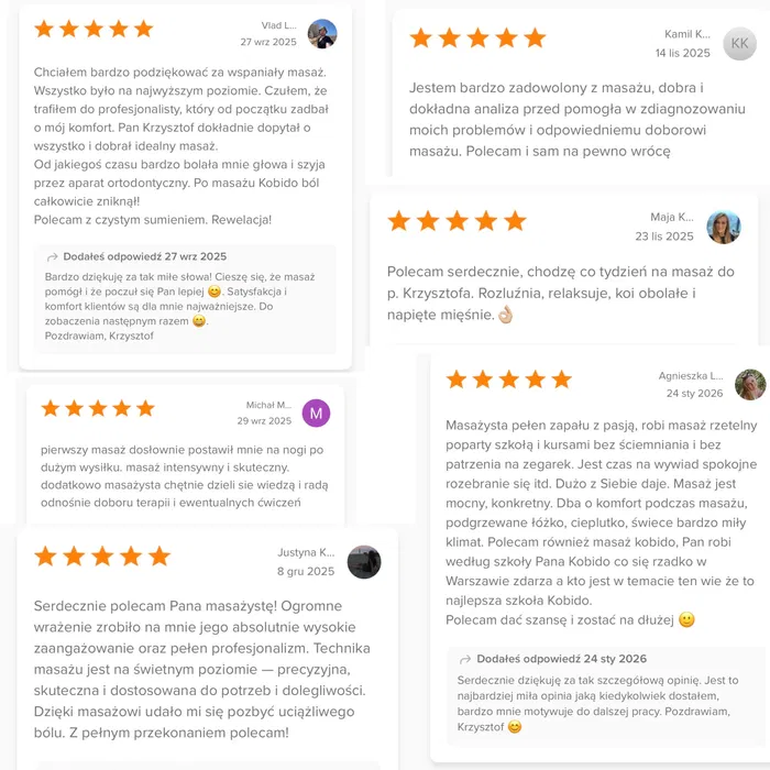 Posiadam ponad 100 opinii i kilkaset wykonanych masaży, zaufaj doświadczeniu i nie wstydź się napisać.