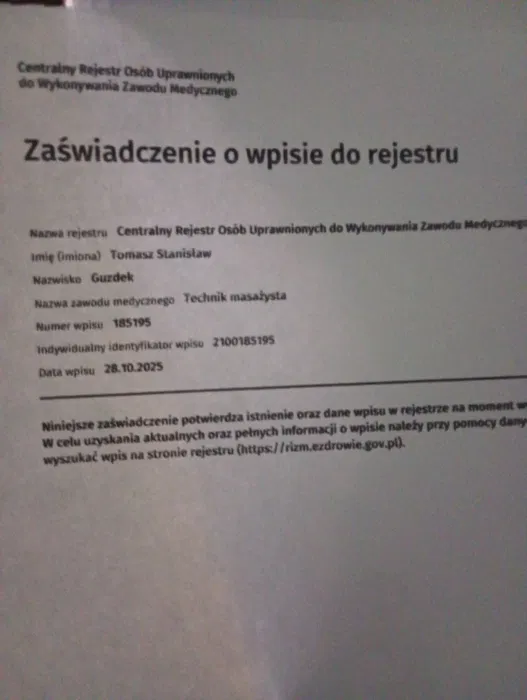 Tech Masażysta / Bowen INDYWIDUALNY ident. masażysty med na zdjęciu